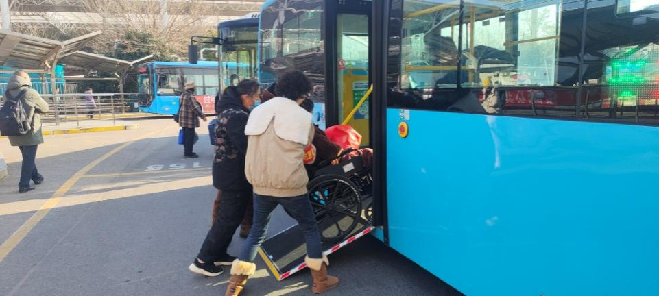 1月9日上午,一名乘坐轮椅的残疾旅客到站,志愿者立即上前通过无障碍通道帮扶其登上公交车,并细心固定好轮椅。旅客连连致谢,感叹出行全程周到暖心。这一幕,正是蚌埠公交志愿者守护“春运最后一公里”的生动缩影。